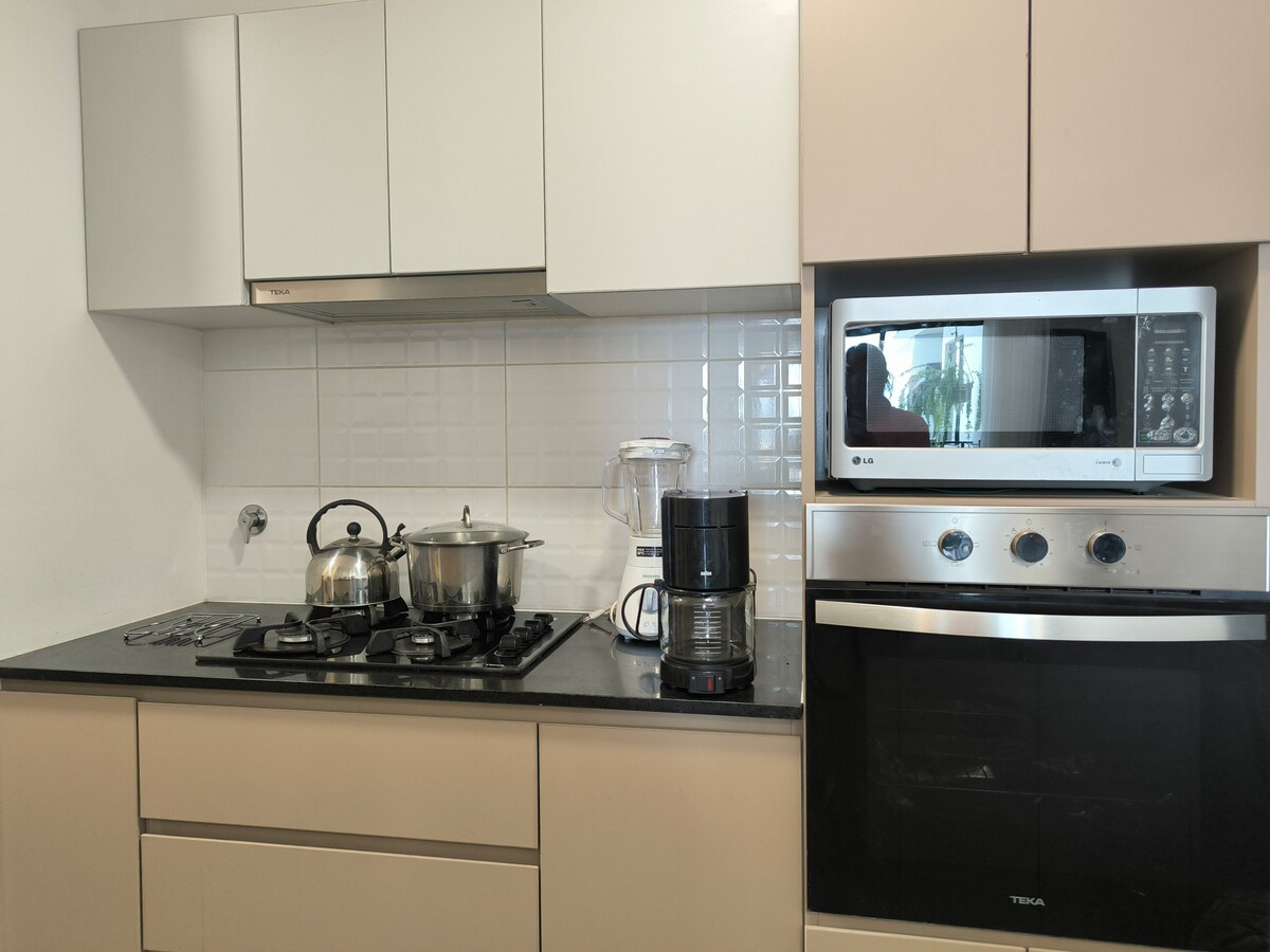 Departamento de estreno en una ubicación inmejorable, cerca al Campo de Marte, Estadio Nacional, Parque de las Aguas, Hosp. Rebagliati, CC La rambla, restaurantes, parques, todo a tu alcance y en una zona segura. El dpto está excelentemente equipado, cocina con menaje y artefactos, lavandería con lavaseca, tendal, dormitorio con amplio clóset, TV, y espacio de trabajo. Moderno comedor con 4 sillas, Sala con sofá cama, y butaca, centro de entretenimiento con TV, y balcón con vista increíble.