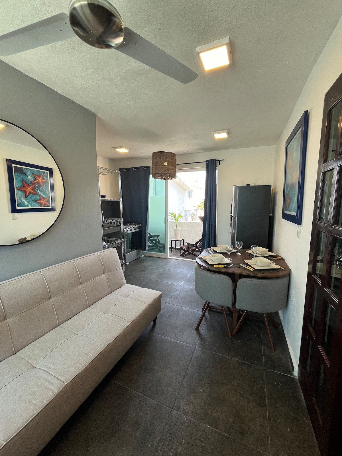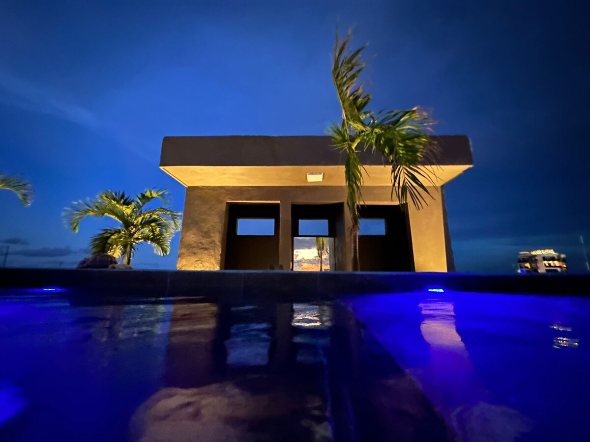Retraite de niveau supérieur à 6 pâtés de maisons du Malecón. Détendez-vous dans un lit King, diffusez du contenu en continu avec la fibre rapide 50/50 Mbps et profitez de votre salle de bain privée. Les plongeurs ont des bacs de rinçage, les travailleurs à distance ont un bar ombragé pour coworker. Marchez jusqu'aux cafés, aux tacos et au ferry en quelques minutes. Climatisation, arrivée autonome avec serrure intelligente et parking privé : 1 place de parking (premier arrivé), 4 baies pour scooters et 5 supports à vélos. Location de trottinettes sur place. Réservez des excursions de snorkeling, de plongée ou des visites en Jeep avec nous.