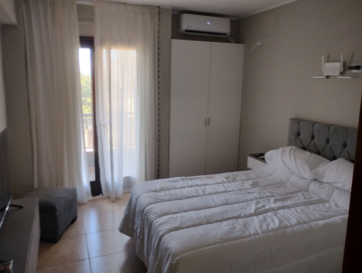 Moderne, confortable et spacieux. Le coin cuisine dispose de tout ce dont vous avez besoin. La salle de bains dispose d'un défrisant et d'un sèche-cheveux. Climatisation. 50 mts de Av. Principal, à 100 mètres du monument et de la promenade du bicentenaire. 500 mètres du microcentrique. Accès facile. Il dispose de deux patios, barbecue, garage privé avec porte automatique, artisanat décoratif. DirecTV, WiFi. Très proche des supermarchés et des stations-service avec bar de repos 24h/24. Animaux de compagnie autorisés.