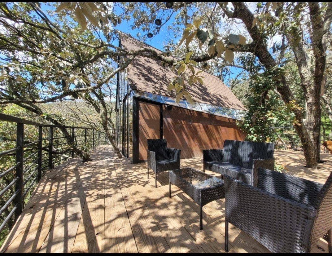 Cabaña elevada en las copas de los árboles que te brinda una vista espectacular al horizonte con los amaneceres más bellos y una vista del bosque con otra perspectiva desde arriba. Máxima tranquilidad con 30 mil m2 de bosque privado en el que puedes hacer senderismo, ciclismo o simplemente disfrutar de la naturaleza. Están construidas con materiales y vidrios térmicos, sus interiores con muebles y accesorios de alta calidad qué te ofrecen una estancia boutique y de relajación.