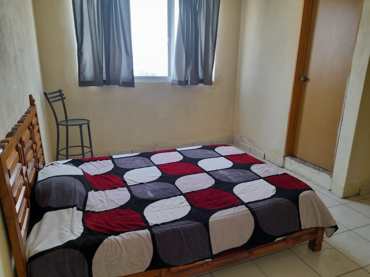 El departamento se encuentra dentro de un inmueble donde existen otros departamentos cuenta con un jardin muy amplio. Tendras disponible una recamara con cama matrimonial, y en la sala un sofa cama, internet y agua caliente, una smart tv y un pequeño comedor, el baño es amplio. Es un lugar extremadamente seguro y bien iluminado, yo vivo. 4 casas de distancia asi que siempre podre echarte una mano para lo que necesites. A menos de 200 metros esta la carretera para que tomes rumbo a tu destino.
