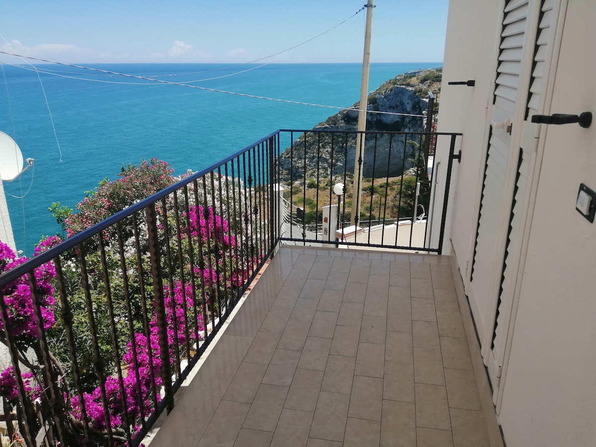 Un logement indépendant avec une grande terrasse, un parking privé et un jardin avec barbecue. La maison s'élève dans une zone calme sur une falaise avec une vue imprenable sur la mer. Le logement dispose d'une cuisine et d'un salon, de deux chambres doubles, une avec lit double et une autre avec 2 lits simples, d'une salle de bain avec machine à laver, de la climatisation, de la télévision et du Wi-Fi. L'espace terrasse est très confortable pour passer votre temps de détente avec les sons de la mer et prendre un dîner/déjeuner romantique.