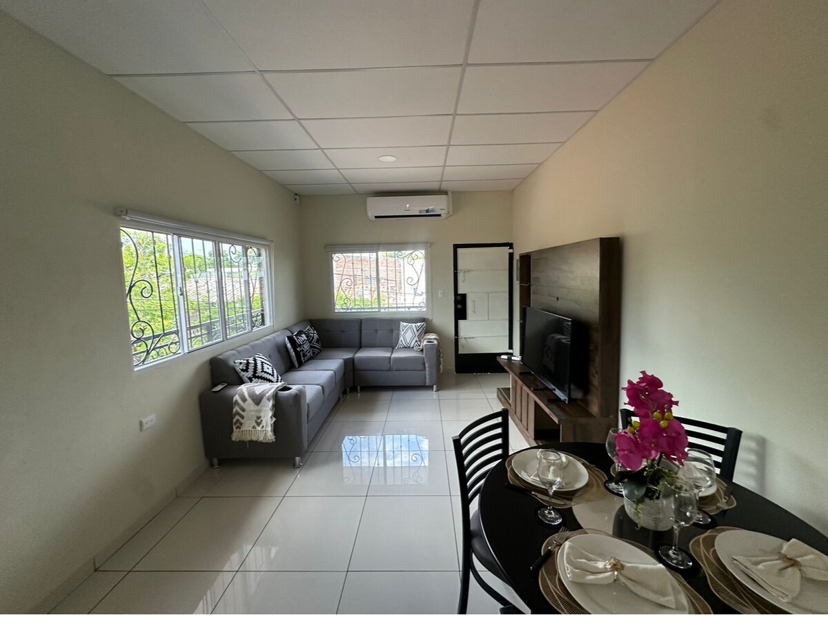 Appartement moderne avec vue imprenable sur le volcan San Salvador, parfait pour 2 personnes. Comprend 1 lit, une connexion Wi-Fi de 200 Mbit/s et tout le nécessaire pour passer un séjour agréable. Situé au centre d'une copropriété haut de gamme avec sécurité 24h/24 et 7j/7, piscine, salle de sport, salle de jeux, cinéma en plein air, mur d'escalade et salon panoramique. Idéal pour le télétravail ou pour profiter d'une escapade relaxante en ville !