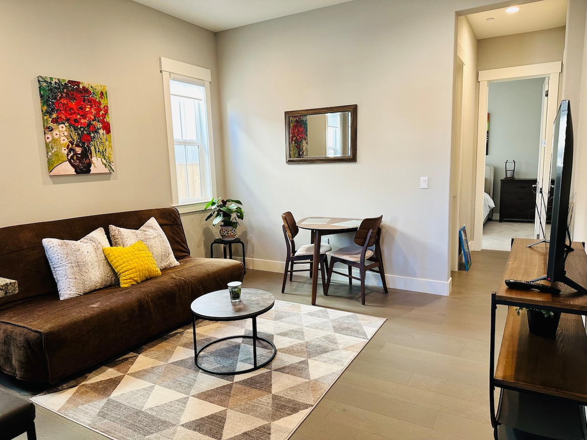Besoin d'une location de courte durée pratique à proximité de tous les points forts de la ville pour votre prochain séjour dans la région de San Francisco Bay Area ? Ne cherchez pas plus loin ! Cette suite exécutive dispose de tout le nécessaire pour une expérience confortable de type hôtel et se trouve à seulement quelques minutes des restaurants, des magasins et de la gare BART ! L'élégant espace d'une chambre et d'une salle de bain peut accueillir confortablement 2 personnes et dispose d'une connexion Wi-Fi rapide, d'une télévision connectée, d'un espace de travail dédié, d'une cour privée et d'une kitchenette que les voyageurs d'affaires et de loisirs apprécieront.