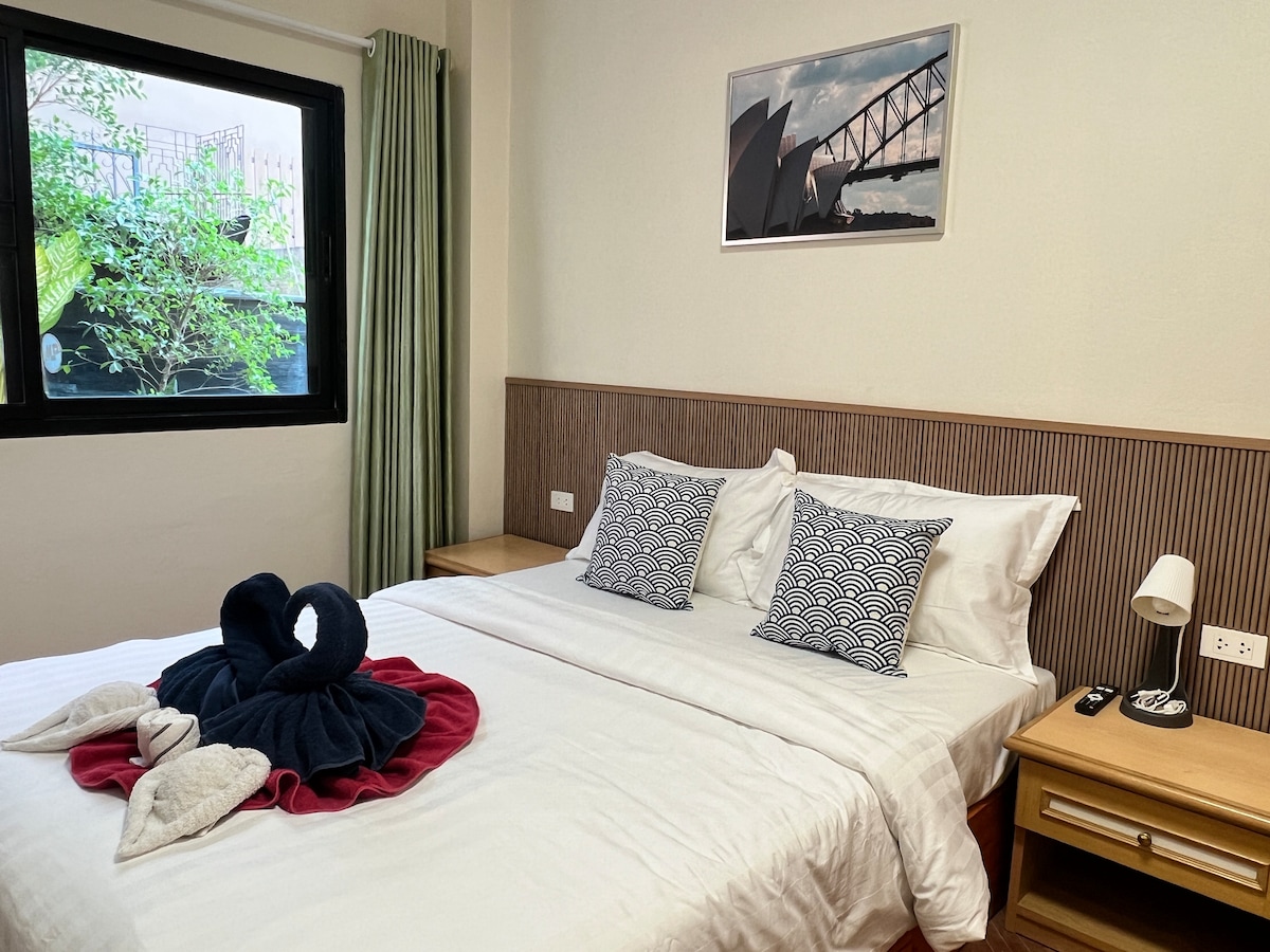 Il s'agit d'un appartement d'une chambre de style hôtelier situé dans la cour du jardin arrière de l'Université de Chiang Mai. L'environnement est calme et confortable, et il est entièrement équipé pour y vivre. La chambre dispose d'une salle de bain privée, d'une mini-cuisine, d'un réfrigérateur et d'une télévision connectée, adaptée aux courts séjours ou aux séjours de moyenne à longue durée. Il y a un café et un restaurant chinois dans la cour, pratique pour la vie quotidienne. À 250 m à pied de Food Street, à 500 m à pied de la porte arrière de l'université de Chiang Mai, parfait pour les étudiants, les visiteurs et les invités de longue durée.