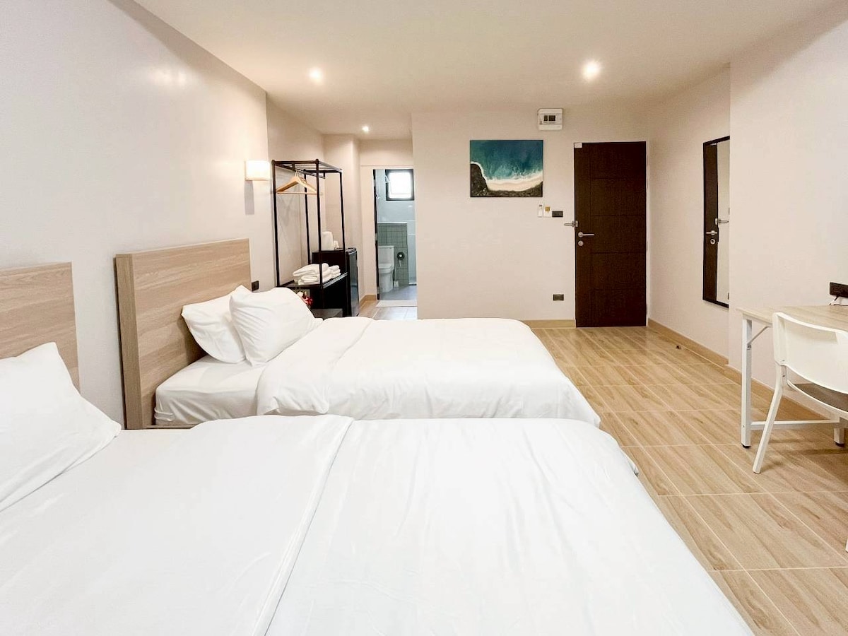 Cette maison de ville minimaliste est située dans la vieille ville de Chiang Mai (centre-ville) à seulement 1 min à pied de la porte Chang Phuak. En quelques minutes à pied, vous pourrez facilement trouver des vendeurs de cuisine de rue populaires et le célèbre North Gate Jazz Bar. Il y a 3 chambres, 2 salles de bains (1 agrandie, 1 normale) et un salon/salle à manger. Idéale pour un groupe d'amis ou une famille. Une place de parking gratuite est disponible.