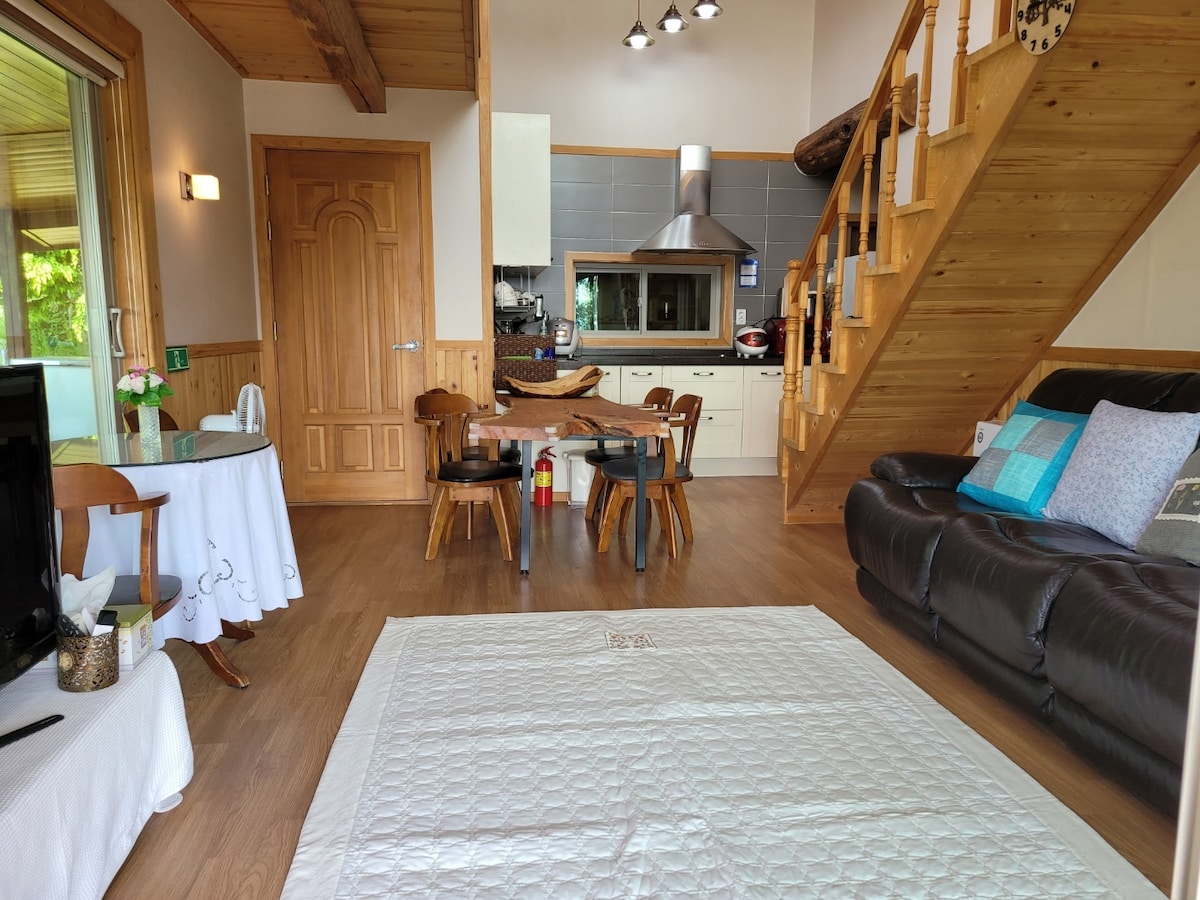 C'est un endroit où vous pourrez profiter de la lumière des étoiles du ciel nocturne sous le ciel clair et de la chaleur dans le brasero sous les pins. Vous pouvez également participer à la classe d'une journée pour créer un voyage significatif.(Demande d'expérience : message après réservation) ✔ 2 personnes/arrivée à 15 h, départ à 10 h ⛳️ Emplacement : à 5 minutes du parc national, à 10 minutes de Suncheonman, à 10 minutes de la gare de Suncheon, à 30 minutes de Yeosu 🎿 Équipements : lit queen size, canapé, cheminée, barbecue à gaz, ustensiles de cuisine 🏺 Équipements : serviettes, shampoing, après-shampoing, mousse nettoyante, etc. 🍀 Linge de lit lavé quotidiennement ! 🔥Brasero, barbecue extérieur, hamac (possible même en cas de neige/pluie) 🎨 Cours d'une journée (cérémonie du thé : 15 000 KRW par personne / poterie : 70 000 KRW pour 2 personnes) 🪵Options supplémentaires : bois de chauffage (20 000 KRW), barbecue (15 000 KRW), événement d'évaluation (7 000 KRW) Nous accueillons tous ceux qui veulent passer une pause chaleureuse dans notre logement.