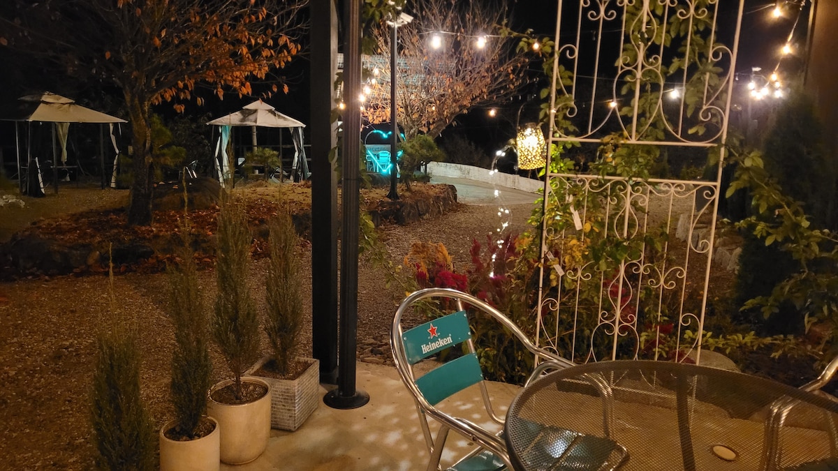À 30 minutes de Cheongju, près de Huyang-rim, de la vallée et de l'arboretum, c'est une belle pension ensoleillée. Je recommande vivement ceux qui veulent se reposer confortablement dans les bras de la nature. Il s'agit d'une annexe séparée à côté du bâtiment principal, avec piscine, cheminée, barbecue, karaoké, Netflix 100 pouces, jardin et parking. Un gestionnaire réside dans le bâtiment principal pour vous aider à tout moment. Il est situé dans un très bon endroit géographiquement en raison de la vallée de Baesan et est plein de soleil toute la journée. Il y a une balançoire et des jeux de sable dans un espace de 660m², ce qui est idéal pour les enfants, et vous pouvez également dormir dans une tente la nuit en regardant les étoiles. Les légumes du jardin sont fournis gratuitement et vous pouvez également faire l'expérience de la chambre de boue. Il y a des attractions telles que des vallées et des villas de vacances à proximité. Le barbecue n'est pas possible à l'intérieur, mais il y a un barbecue où vous pouvez le manger chaud à l'extérieur. Le karaoké installé dans le barbecue est également disponible. Venez vous reposer dans un hébergement où le printemps, l'été, l'automne et l'hiver sont magnifiques^^