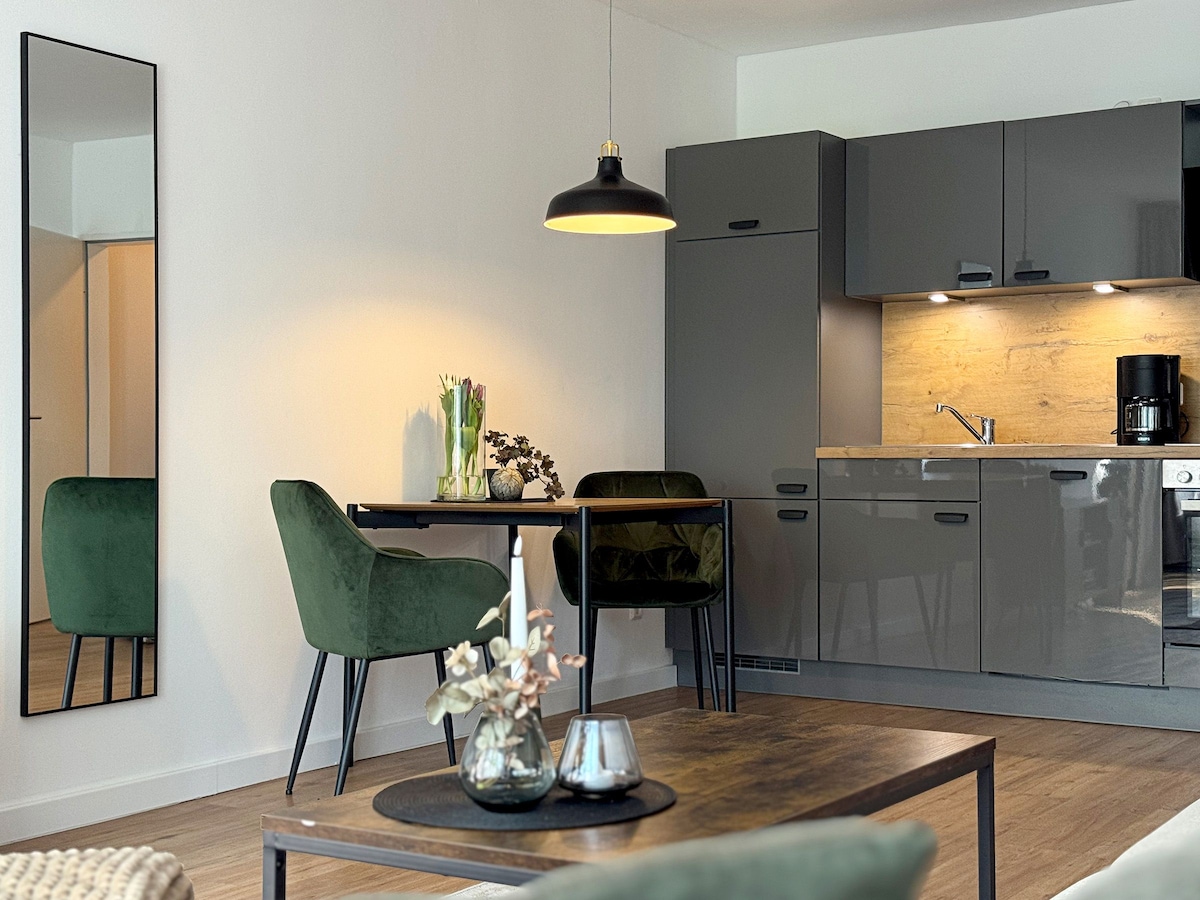 -Appartement n° 2- Nos appartements de vacances sont situés à 300 m à pied directement sur la montagne Matthias Schmidt et directement sur le parc à vélo MSB-X-Trail. Dans chaque appartement, avec une cuisine entièrement équipée et une salle de bain privée, tu peux te reposer et te détendre complètement la nuit, avant que la prochaine aventure dans le Harz ne t'attende. Nous sommes très fiers des appartements que nous avons rénovés et espérons qu'ils te plairont aussi !