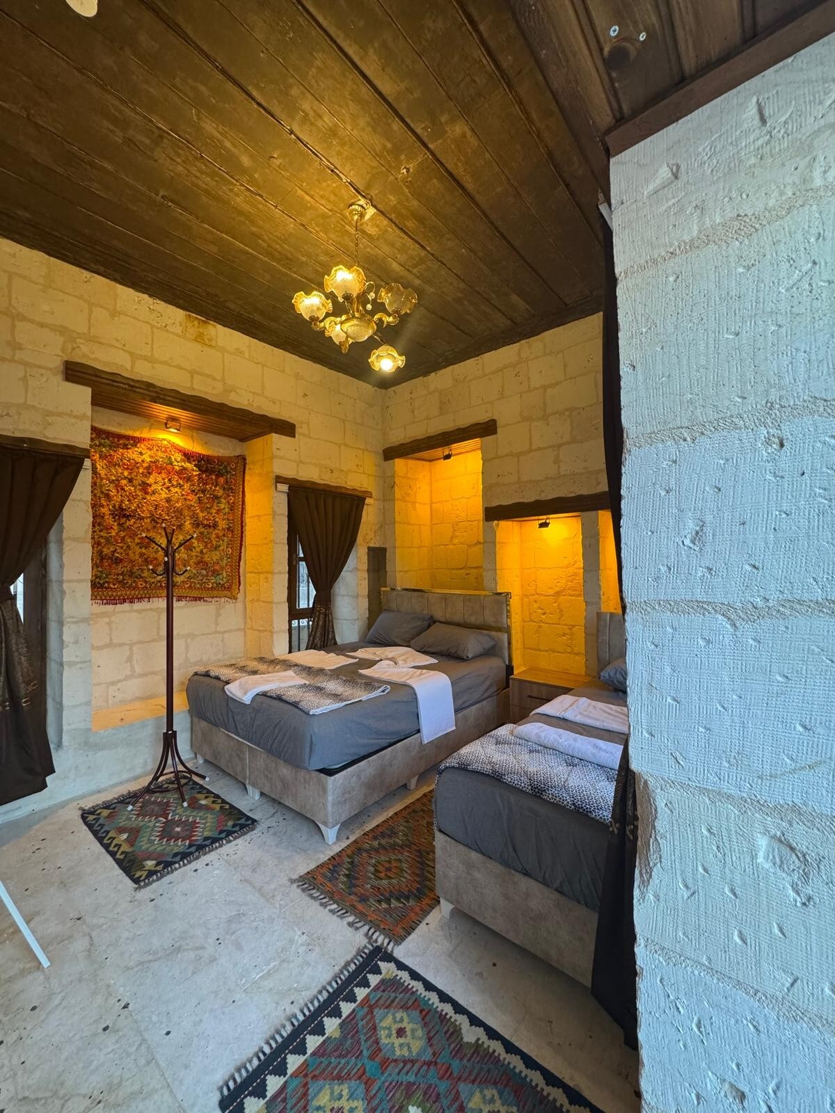 Notre chambre a une capacité de 3 personnes et est équipée d'un grand lit double et d'un lit simple confortable supplémentaire. Bien qu'elle soit adaptée à 3 personnes, c'est aussi une chambre qui est souvent préférée par les couples et appréciée pour son espace. Il est à quelques minutes à pied de Balıklıgöl et du bazar. Vous pouvez commencer la journée avec notre thé et café gratuits dans notre jardin. Que vous soyez un couple ou un petit groupe, vous vous sentirez comme chez vous dans cette chambre.