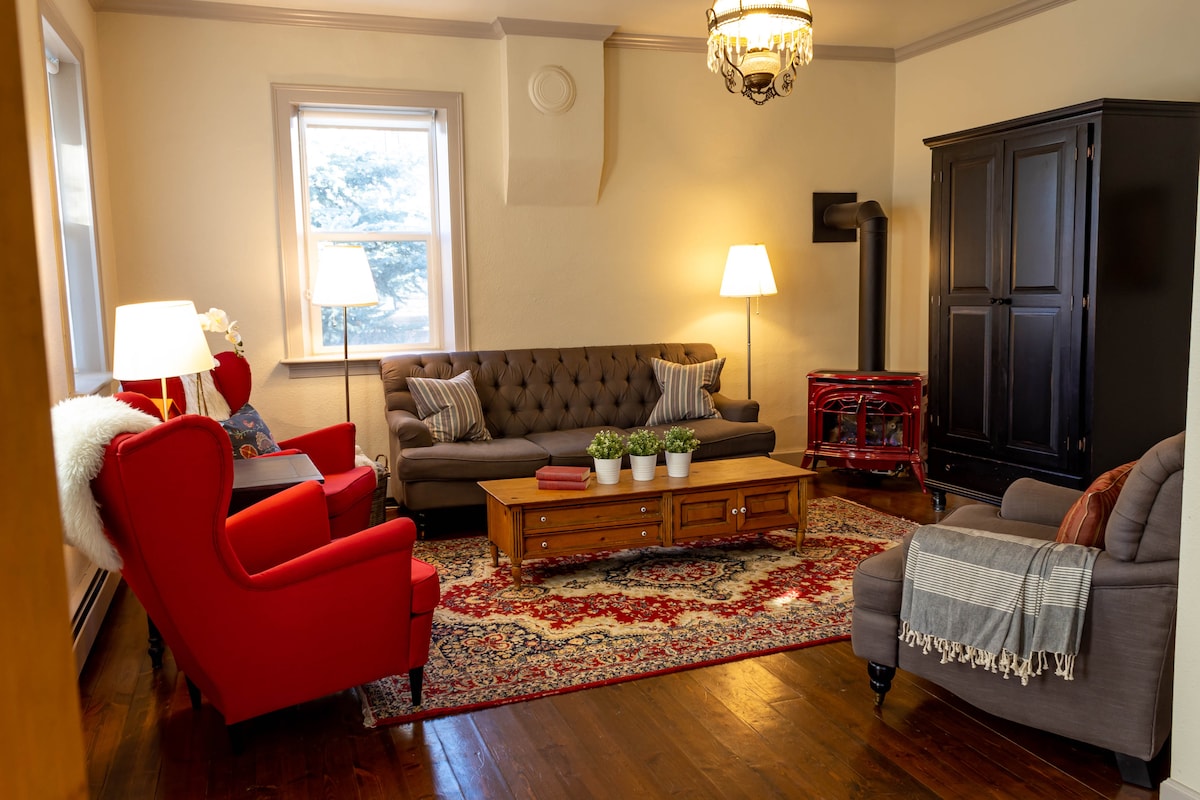 Profitez d'un logement élégant et central. Blottissez-vous près de la cheminée et profitez de votre compagnie, ou faites une courte promenade jusqu'à plusieurs restaurants différents à proximité. À seulement deux pâtés de maisons de la Wasatch Academy et à quelques minutes en voiture des magnifiques montagnes. Nous vivons à l'étage et nous nous ferons un plaisir de vous aider pour tout ce dont vous avez besoin pour rendre votre séjour confortable, mais nous vous donnerons également l'intimité que vous souhaitez. Parking privé (4 places) et entrée privée. Cuisine entièrement approvisionnée, salle de bain et buanderie.
