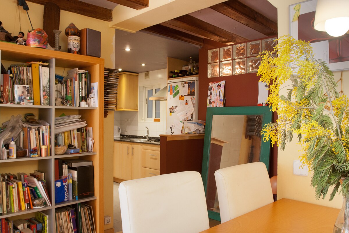 Bel appartement décoré avec du bois dans le centre de Barcelone. Toutes les commodités.