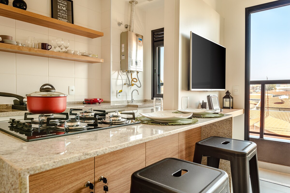 Flat Top à Campinas avec climatisation et loisirs.