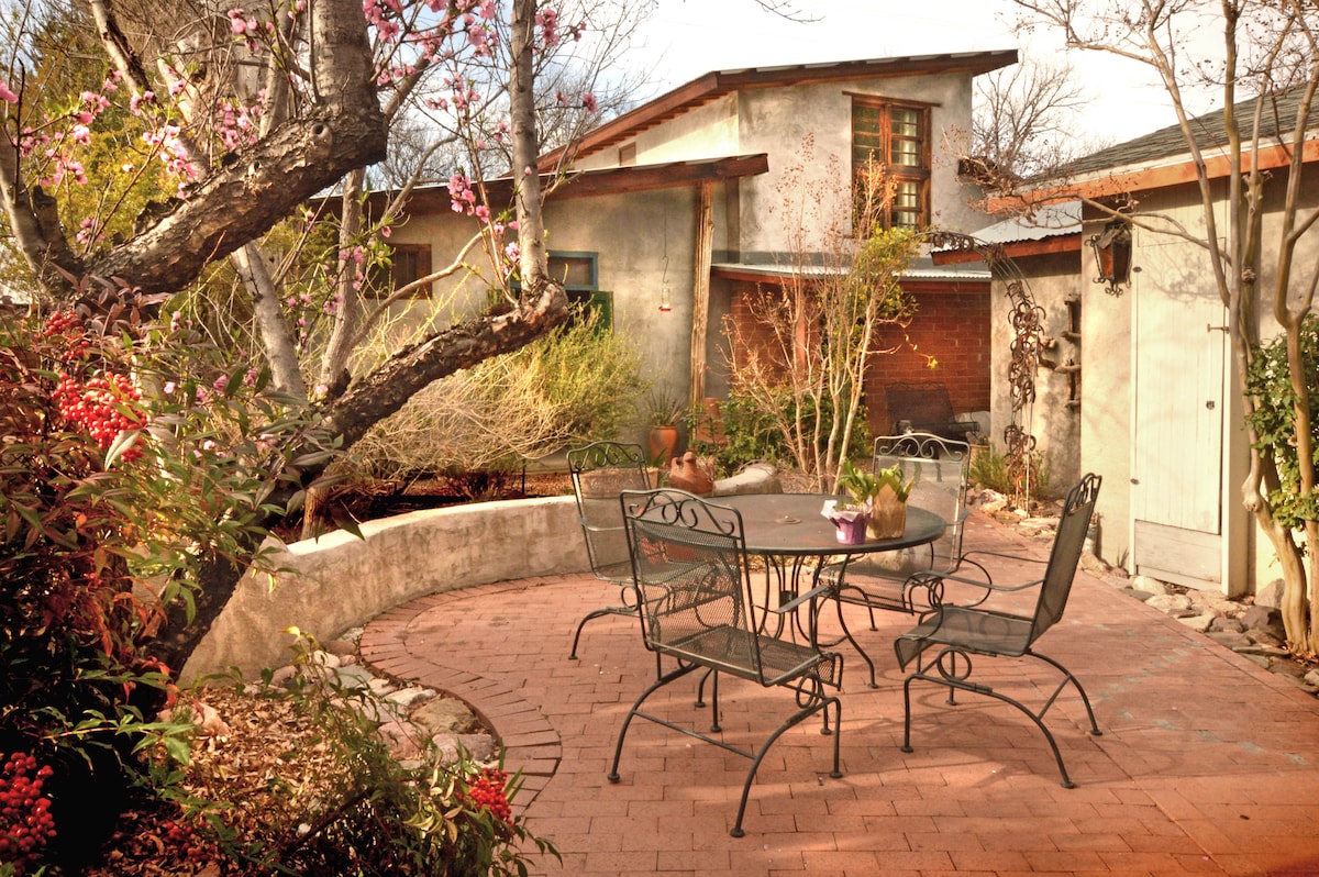 Situé dans le quartier historique du village ; une icône de Tubac. Conduisez gratuitement... chargez avec mon panneau solaire de niveau 2 pendant que vous êtes ici ; la maison est 100 % solaire. Privé, sécurisé, meilleur emplacement, temps chaud, Internet rapide, lit neuf et confortable, cuisine complète, climatisation de haute qualité, pittoresque, parking facile gratuit, lave-linge/sèche-linge, cour fortifiée avec fontaine, douche à l'italienne, stores occultants. Huit excellents restaurants à moins de 1 mile. Une valeur exceptionnelle, le meilleur prix, pas de dépôt ni de frais de ménage.