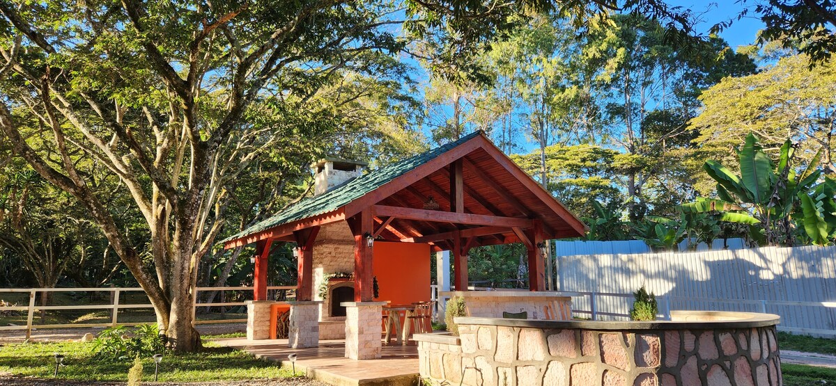 Relájate con toda la familia en este tranquilo lugar para quedarse. Escapate de la rutina de la ciudad y ven a disfrutar de esta hermosa cabaña, con Kiosco, área de fogata, area de juegos infantiles entre otras amenidades.