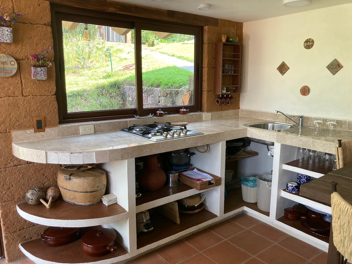 Profitez d'Avandaro avec tout le confort, l'intimité et la nature que la maison Amelia vous offre. Une maison conçue pour partager en famille ou entre amis, où vous pouvez passer d'agréables moments sur la terrasse en sentant que vous êtes au milieu de la forêt. Le village avec ses commerces et rest est à seulement 5 min. Le rest et bar du Fishe' s House est situé à un demi pâté de maisons. Profitez du chant des coqs à l'aube, bien que nous ayons également des boules d'oreille pour les plus sensibles.