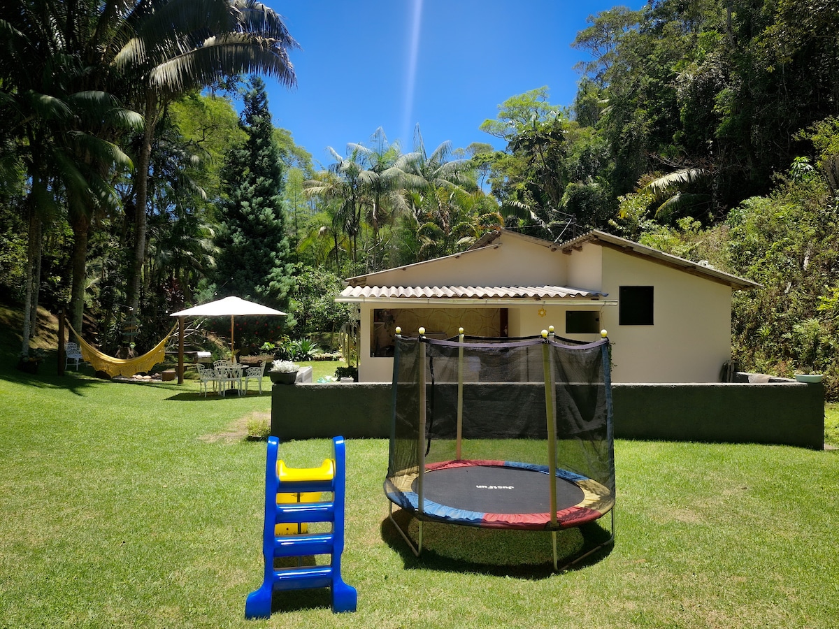 Chácara Vista da Mata Située dans une communauté fermée à seulement 8 km du centre-ville de Santa Teresa, Chácara Vista da Mata est l'escapade idéale pour le repos et les loisirs. Avec une grande pelouse et entièrement entourée pour la sécurité des animaux de compagnie, elle offre un jacuzzi chauffé avec vue sur la forêt, ainsi qu'une balançoire pour la contemplation. Idéal pour les couples et les familles à la recherche de confort, d'intimité et d'une expérience unique de paix, de repos et de connexion avec la nature.