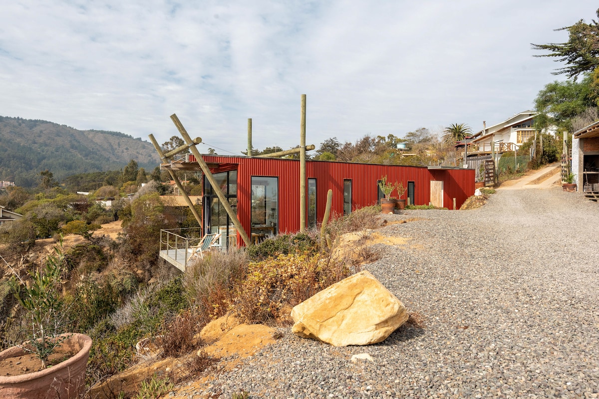 Le Red Loft de Punta Quintay est exactement le même que le Gray Loft (élu le plus apprécié sur Airbnb l'année dernière), mais « moins célèbre ». C'est notre préféré avec 45 mètres carrés conçus exclusivement pour le repos et les loisirs. Beaucoup plus caché dans un ravin plein de fleurs, de rochers et de docas. Le Red Loft offre une vue propre et unique sur la baie de Playa Grande de Quintay, des draps exquis, un lit king size et tout pour cuisiner avec la meilleure vue sur la mer. Vous voyez tout, personne ne vous voit.