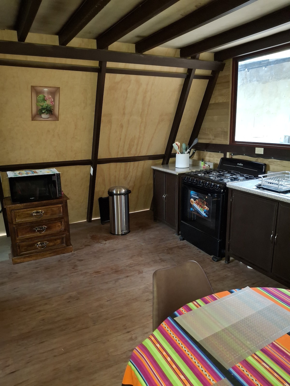 Cozy, compact cabin (tiny cabin style) with a fireplace and jacuzzi, perfect for relaxation. Ideal for couples seeking nature, peace and quiet, a forest setting, comfort, and tranquility. Just 20 minutes from Antigua and 5 minutes from local restaurants, with access to hiking and biking trails. Perfect for a relaxing getaway, solo travel, or working remotely in a peaceful environment.
