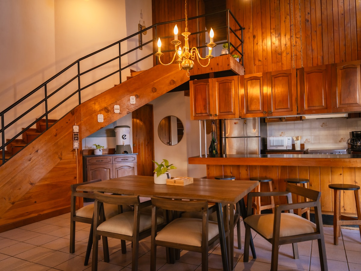 Nous offrons une combinaison parfaite de nature et de confort moderne (nous avons un lave-linge et un sèche-linge) offrant un refuge confortable pour se détendre, sans sacrifier l'accès aux services et aux divertissements (à proximité des centres commerciaux), idéal pour les familles ou les personnes qui recherchent une connexion avec la nature et la commodité urbaine, le tout dans une atmosphère unique et mémorable, permettant de profiter de la tranquillité le matin et de la vie sociale l'après-midi.