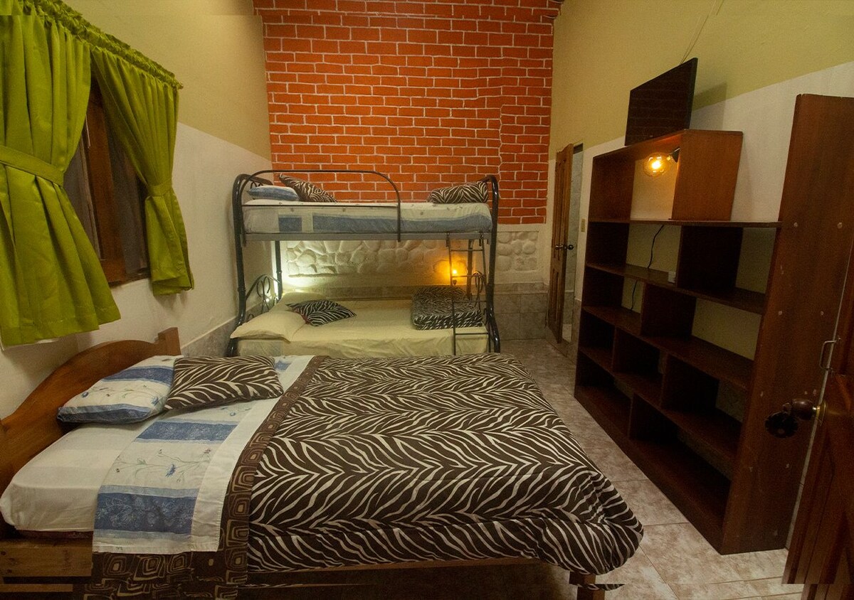 La casa de Cecilia est une petite auberge conviviale située au bord de la rivière dans un environnement calme et naturel, mais à seulement quelques minutes à pied de la place centrale où se trouvent de nombreux cafés et restaurants. N'hésitez pas à nous poser des questions sur les activités telles que la tyrolienne, le canyoning, les tubes, les cascades, la ferme aux papillons et la visite du chocolat. Nous serons heureux de vous aider ! Nous offrons un service de petit-déjeuner, des visites à l'intérieur de Mindo, des transports, un service de blanchisserie, une cuisine commune.
