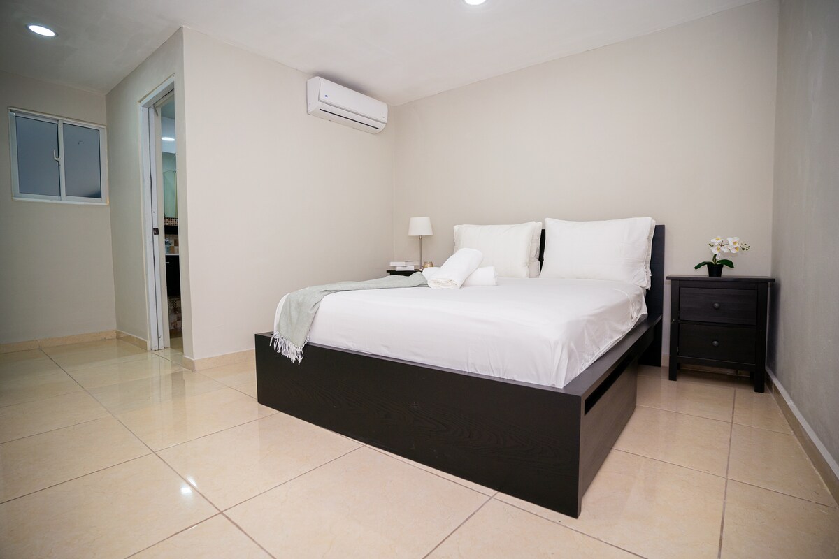 Notre appartement est une oasis lumineuse et charmante qui est entièrement domestiquée, donc on s'y sent comme chez soi : WiFi rapide, téléviseurs intelligents 32"dans le salon et la chambre ; lave-linge et sèche-linge ; notre cuisine a tout ce dont vous avez besoin pour passer une nuit ou une journée si vous le souhaitez. Notre balcon offre une vue imprenable sur le centre-ville et la mer des Caraïbes. Il est également meublé avec des appareils en acier inoxydable ainsi qu'un lave-linge et un sèche-linge. Les voyageurs ont pleinement accès à la piscine et au salon sur le toit, à la salle de sport, au centre pour enfants et au cinéma, ainsi qu'à une place de parking intérieure. Arrivée avec le concierge pour la disponibilité du théâtre. Le concierge sera à votre disposition pour répondre à toutes vos demandes ou questions. L'emplacement est le centre-ville branché et animé de Santo Domingo. Marchez jusqu'aux boutiques, aux bars, aux restaurants et à de nombreuses destinations coloniales emblématiques que la République dominicaine a à offrir. Les plages immaculées de la ville ne sont qu'à quelques minutes. Le train léger, les bus et les taxis abondent dans la région et assurent un transport rapide vers les points d'intérêt locaux. Uber et Lyft sont également à votre disposition. Notre bâtiment est entretenu par un portier et une sécurité 24h/24 et 7j/7 qui améliorera votre sentiment de confort et de sécurité.