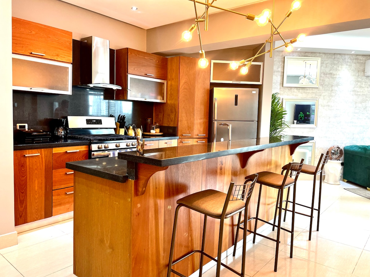 Venez avec vos proches et profitez de ce merveilleux endroit plein de paix et d'élégance. Chaque coin s'adaptera à vos besoins, vous vivrez des moments inoubliables avec les vôtres dans ce bel appartement qui dispose de deux niveaux entièrement pour vous, deuxième niveau avec terrasse privée et un jacuzzi pour plus de 8 personnes qui apporteront de nombreuses histoires amusantes, bar, une cheminée et une belle vue depuis la terrasse. Vous vous sentirez comme à la maison.