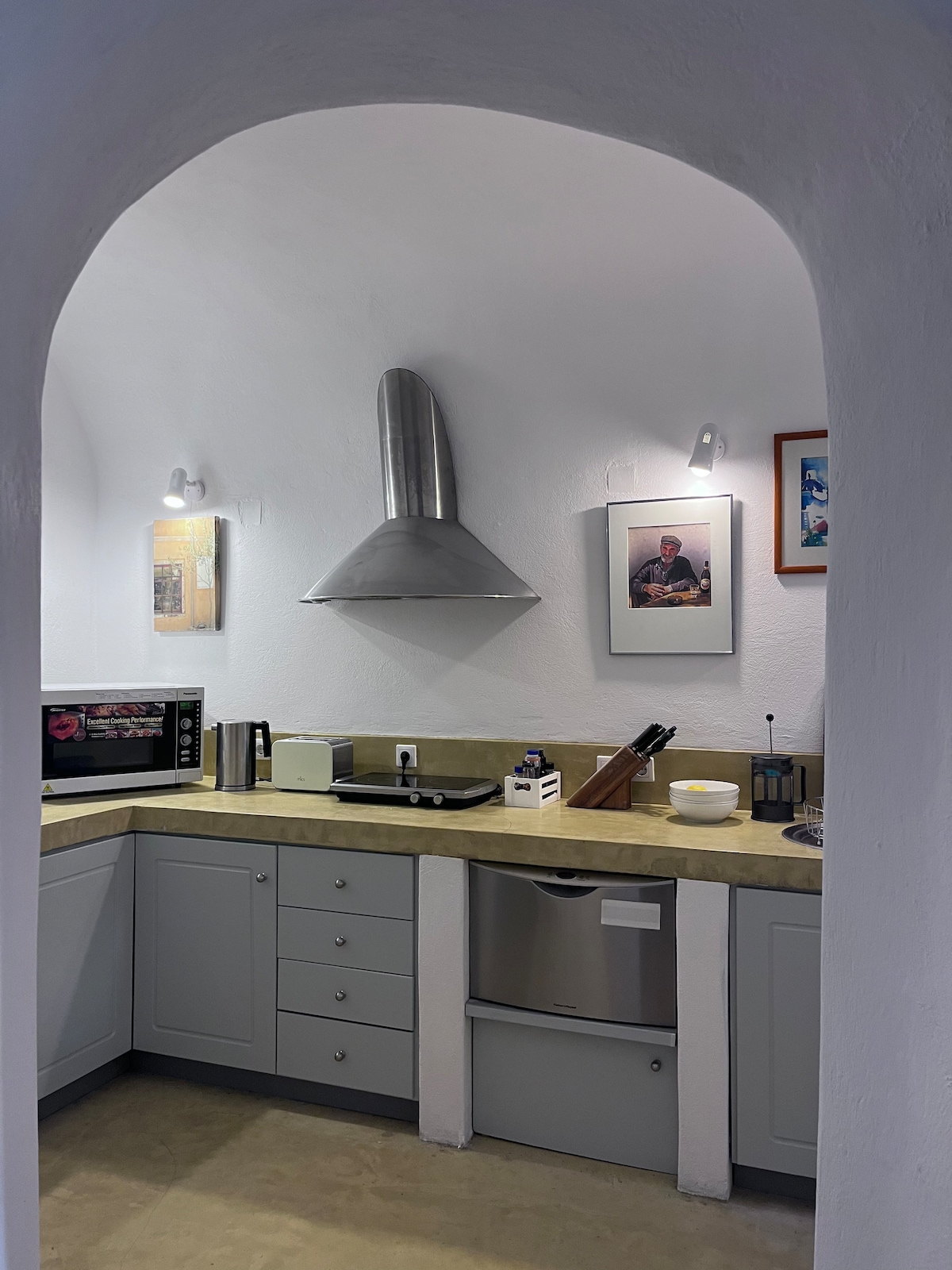 Feel the experience of a traditional cave house in a quiet and graphic neighborhood of Akrotiri Village located in short distance of Akrotiri Castle and Center of the Village. Caves are offering a relaxing and peacefull feeling during your stay facing the magnificent Caldera view. Renovated in 2019 keeping the tradional way of architecture and the unique feeling of geothermal energy.