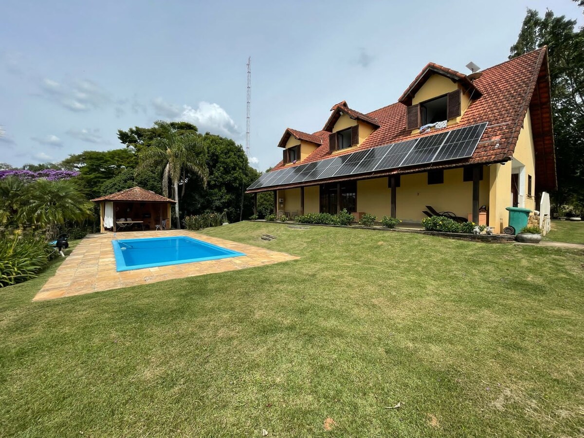 Casa de Campo Cochegante (JUSQU'À 10 personnes chaque jour du séjour) pour des jours en famille et entre amis, coin gastronomique confortable, cheminée, table 10 personnes, barbecue, télévision ouverte, piscine chauffée avec échangeur de chaleur NON ÉLECTRIQUE (besoin de jours ensoleillés), piscine, feu de sol, balançoire, redário, pour se promener dans l'espace de 3000 m très vert et fleuri, hortinha biologique avec temperinhos, enchanteur avec vos photos, ici vous ne pouvez venir qu'avec des amis, sécurité totale et soutien.