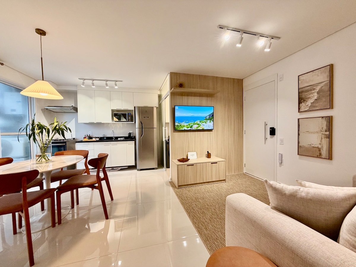 « Studio confortable avec vue panoramique » : chambre Queen avec literie douce et de haute qualité, salle de bain relaxante avec serviettes Buddemeyer, espace de travail avec Wi-Fi, salon confortable avec télévision intelligente, buanderie et cuisine complètes, décor confortable. Réservez maintenant et faites comme chez vous. Appartement en résidence avec piscine, parking et marché de proximité Devant à l'USP À côté de Santa Casa À côté des boutiques et des salles de sport À côté des boulangeries et des marchés