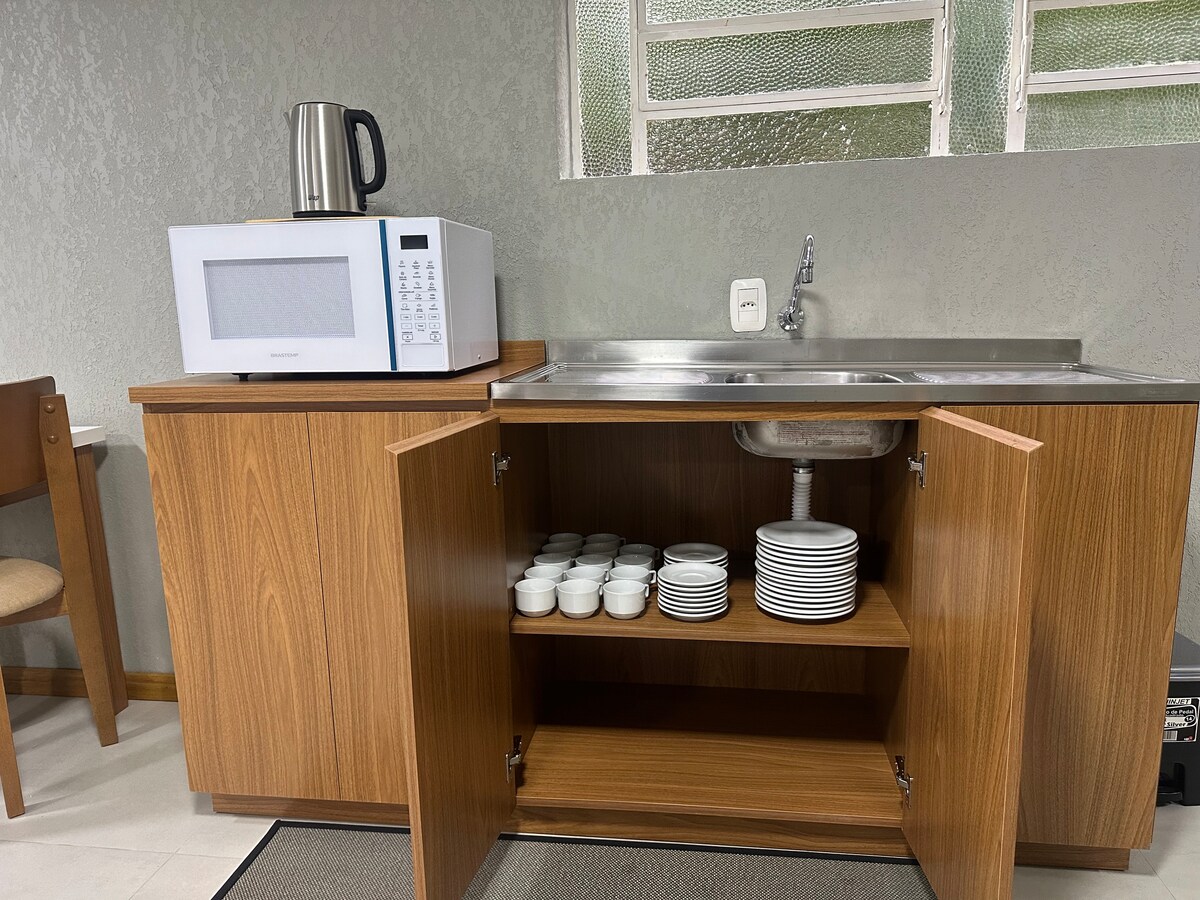 Bel appartement moderne pour jusqu'à 4 personnes, avec salon-chambre, cuisine et salle de bains, récemment décoré pour offrir un excellent séjour. Il dispose d'une connexion Wi-Fi, barbecue, lit queen dans le centre de Canela à quelques mètres de la cathédrale de pierre, chauffé par une fonction chaud/froid, SMART/TV 42", linge de lit, serviette de bain, eau chaude, sèche-cheveux, cuisine équipée avec des condiments de base pour cuisiner inclus dans le prix du séjour. Il dispose d'un garage couvert pour une voiture.