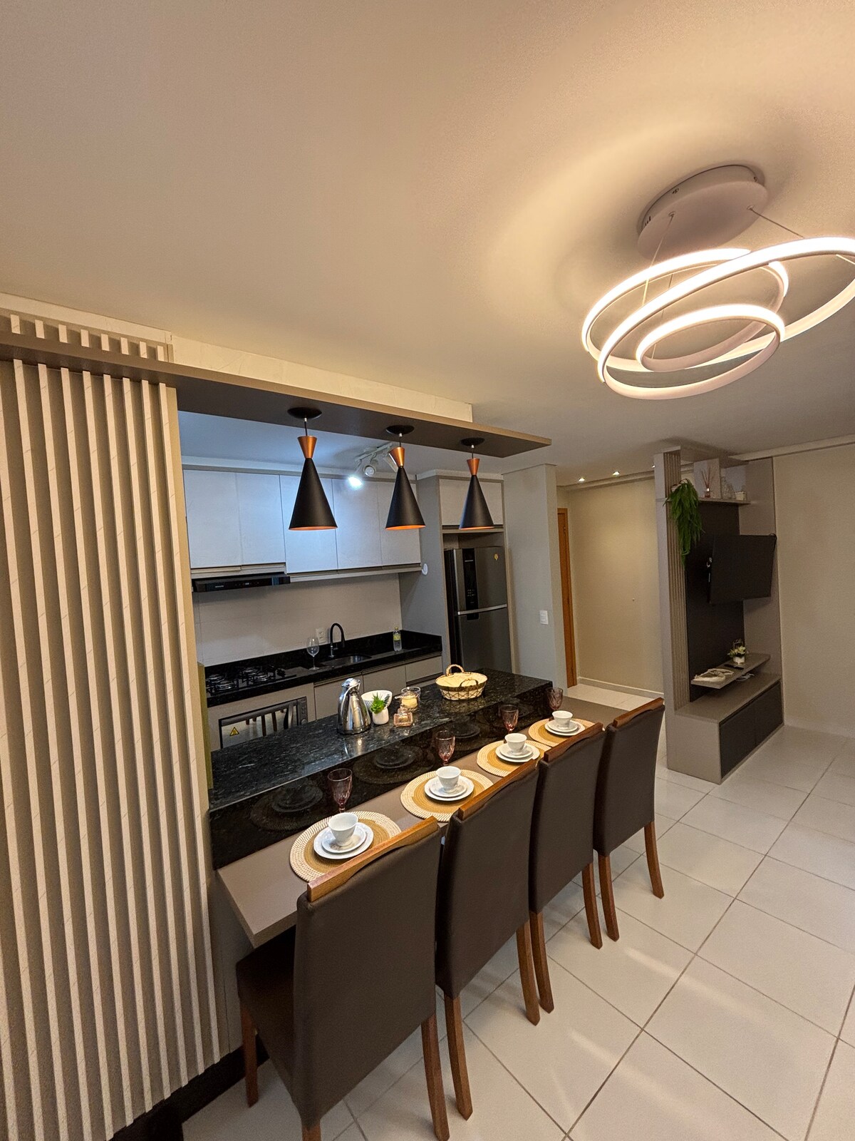 Appartement de 40 m, une chambre et une place de parking couverte. Séjournez chez nous et profitez d'une vue incroyable sur la Sierra et d'une piscine sur le toit. L'appartement est neuf, avec un mobilier planifié et des appareils ménagers neufs et modernes. Le linge de lit et les serviettes des meilleures marques, un nettoyage impeccable. Nous prévoyons tout pour vous accueillir ! L'immeuble est situé dans la région centrale de la ville de Joinville, à 4 min du festival de danse, à 13 min de l'aéroport, à 8 min de Garten Shopping.