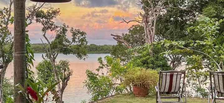 Casa rústica e aconchegante toda equipada, dentro de uma fazenda com entrada particular a beira do Rio Jaguaripe, com praia de rio(Manguezal) exclusiva das duas casas. Uma experiência de tranquilidade e contato com a natureza.A casa se localiza ao lado da primeira vila do Recôncavo, com atrações históricas e passeios para praias paradisíacas de natureza intocada, água cristalina e areia branquinha.Cozinha de frente para o Rio Jaguaripe, muito aprazível para os amantes da culinária.