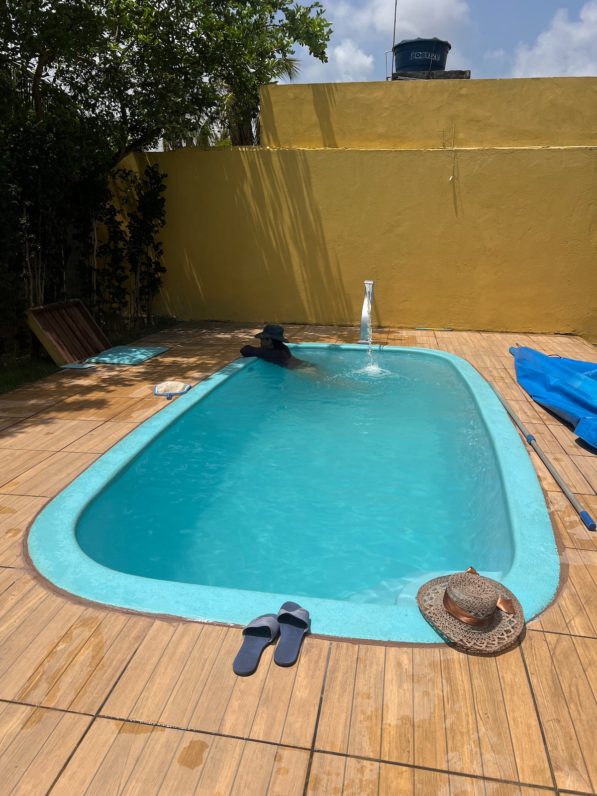 O apt tem 2 quartos, 3 banheiros, cozinha, sala e varanda e estacionamento. O quarto principal é bem ventilado, tem uma cama king size e uma rede. O outro quarto tem uma cama de casal, uma cama de solteiro, uma rede e ar condicionado. A cozinha é bem completa com air fryer, microondas, fogão, geladeira etc. Na sala tem tv com home theatre, sofa cama e na varanda tem uma vista incrível, que pode apreciar desde uma rede. O cond. tem 2 piscinas, churrasqueiras, quiosque, acesso a praia pelo bosque.