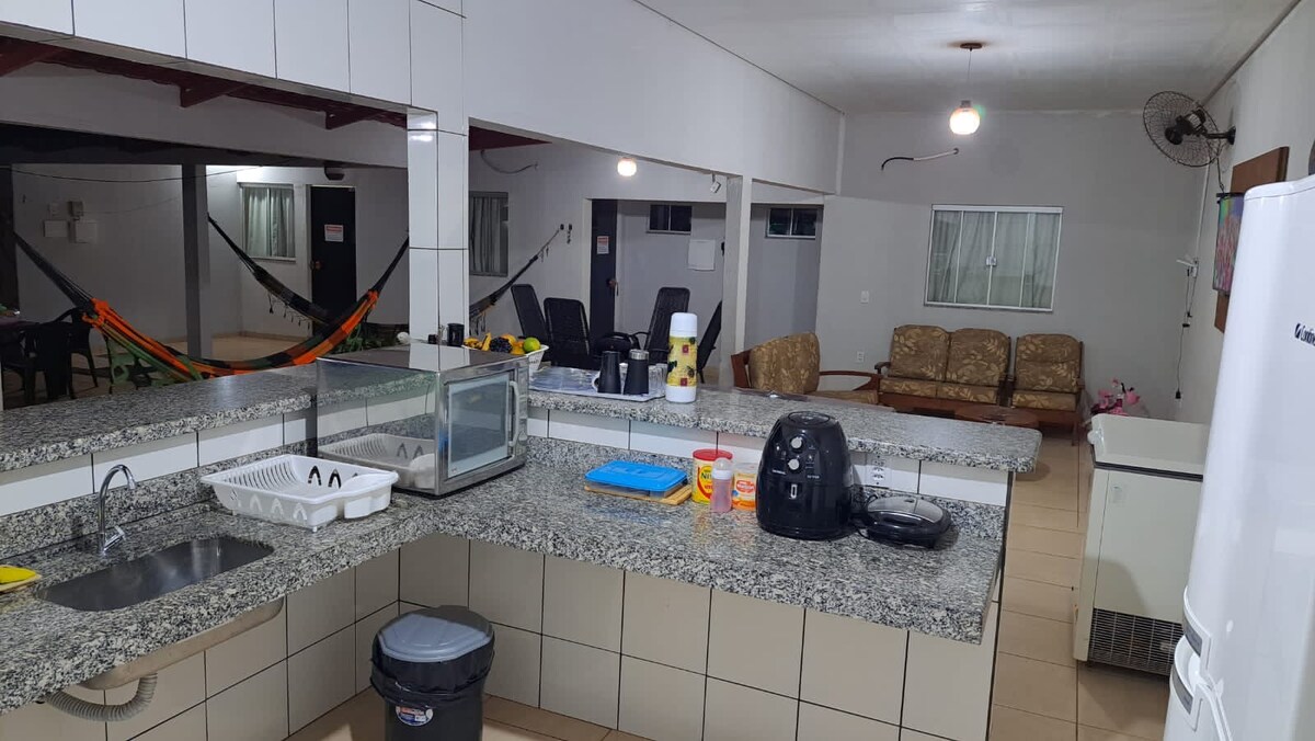 Embrassez la simplicité dans cet endroit paisible et bien situé, une vue privilégiée sur la rivière Araguaia. Excellent endroit, avec plusieurs hamacs pour se reposer, coin barbecue complet, piscine…