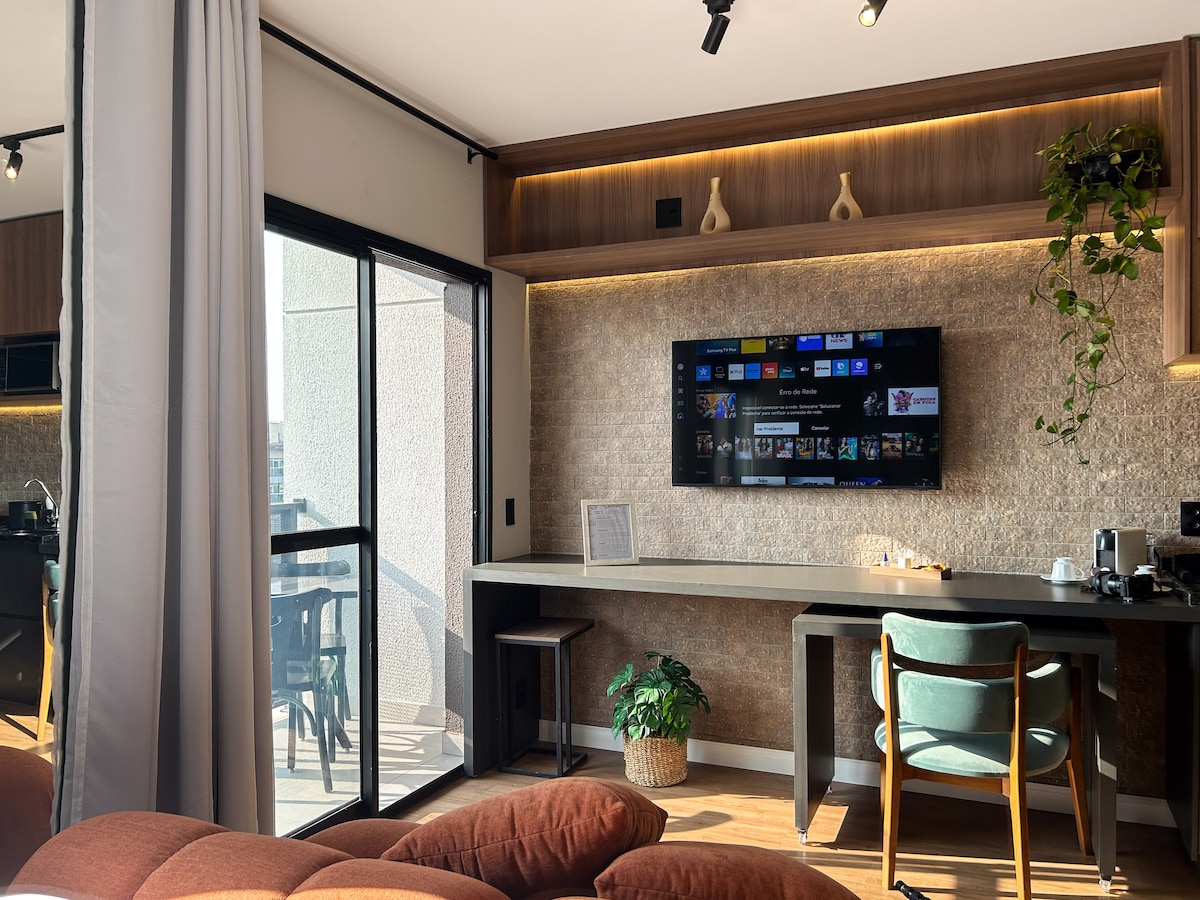 ATTENTION : Pour utiliser le parking, vous devez nous prévenir à l'avance. Voir l'entrée du site sur les photos. Loft moderne bien décoré avec une belle vue urbaine de São Paulo. Il offre un lit Queen avec un surmatelas de 10 cm, une télévision de 50 pouces et un environnement ensoleillé. La cuisine est équipée d'ustensiles de qualité et comprend une table à manger et un comptoir. Le placard a un bon espace de rangement et l'appartement dispose de la climatisation pour un confort tout au long de l'année.