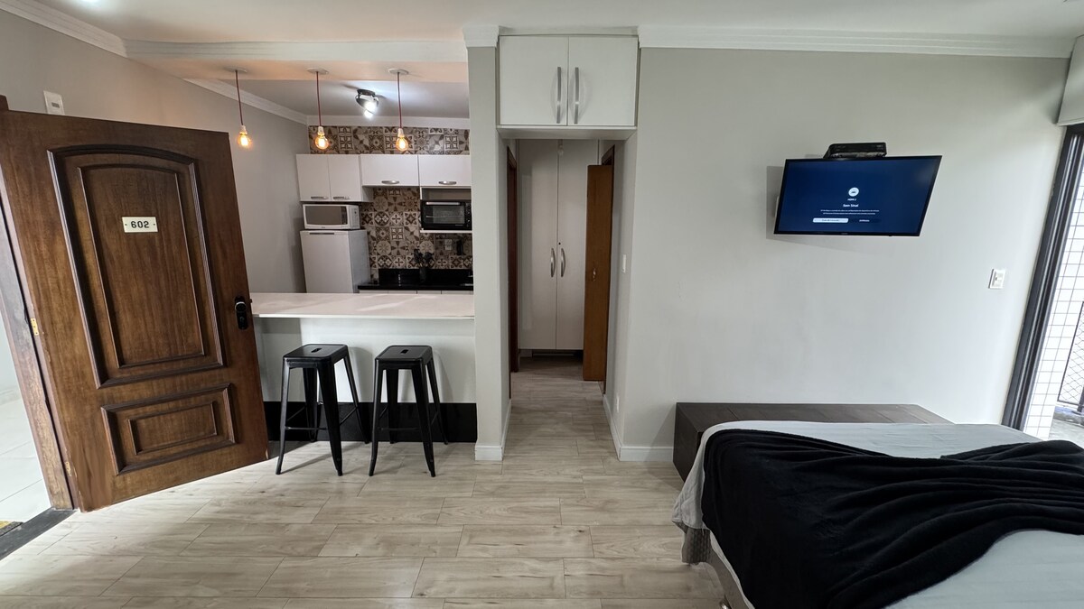 À quelques pas de la MER, au cœur de Praia Grande, à proximité du célèbre marché et des meilleurs restaurants et bars.📍 ✨Jusqu'à 2 personnes Internet ✔ sans fil gratuit ✔ Climatisation ✔ Télévision connectée ✔ Cuisine préparée ✔ 1 place de parking ✔ Éclairage confortable ✔ Décoration romantique personnalisée ✔ Literie complète Escalier ✔ Immeuble ❌ Nous n'offrons pas de serviettes de bain ⏰ Départ à midi - Possibilité d'heures supplémentaires (voir disponibilité) 🤑 -10 % de réduction pour les abonnés @Terralheiro_Imoveis