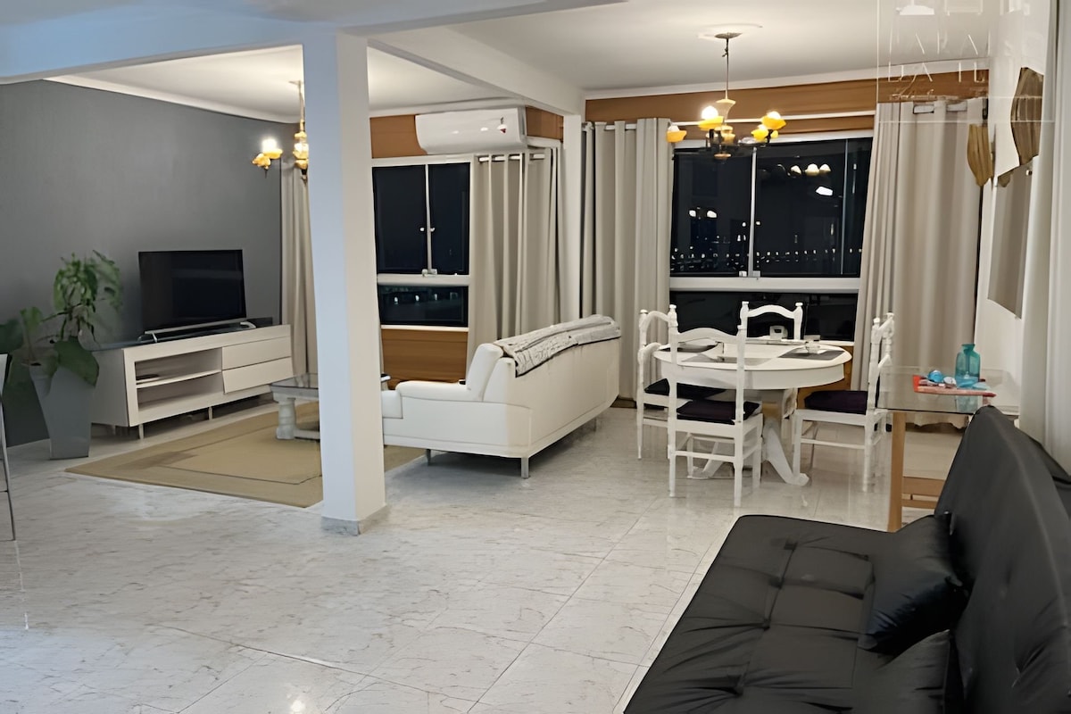 Amusez-vous avec toute la famille dans cet endroit plein de style, face à la mer, avec une vue incroyablement fascinante. Ambiance super confortable pour votre famille, deux chambres, climatisation dans toutes les pièces, cuisine et salon spacieux, parfait pour faire de votre séjour dans ce bel endroit une expérience merveilleuse !!! Chambre double avec lit super king et suite. Sécurité 24h/24 dans le bâtiment. À proximité du téléphérique de São Vicente et Morro do Careca avec des vols en parapente pour les aventuriers !