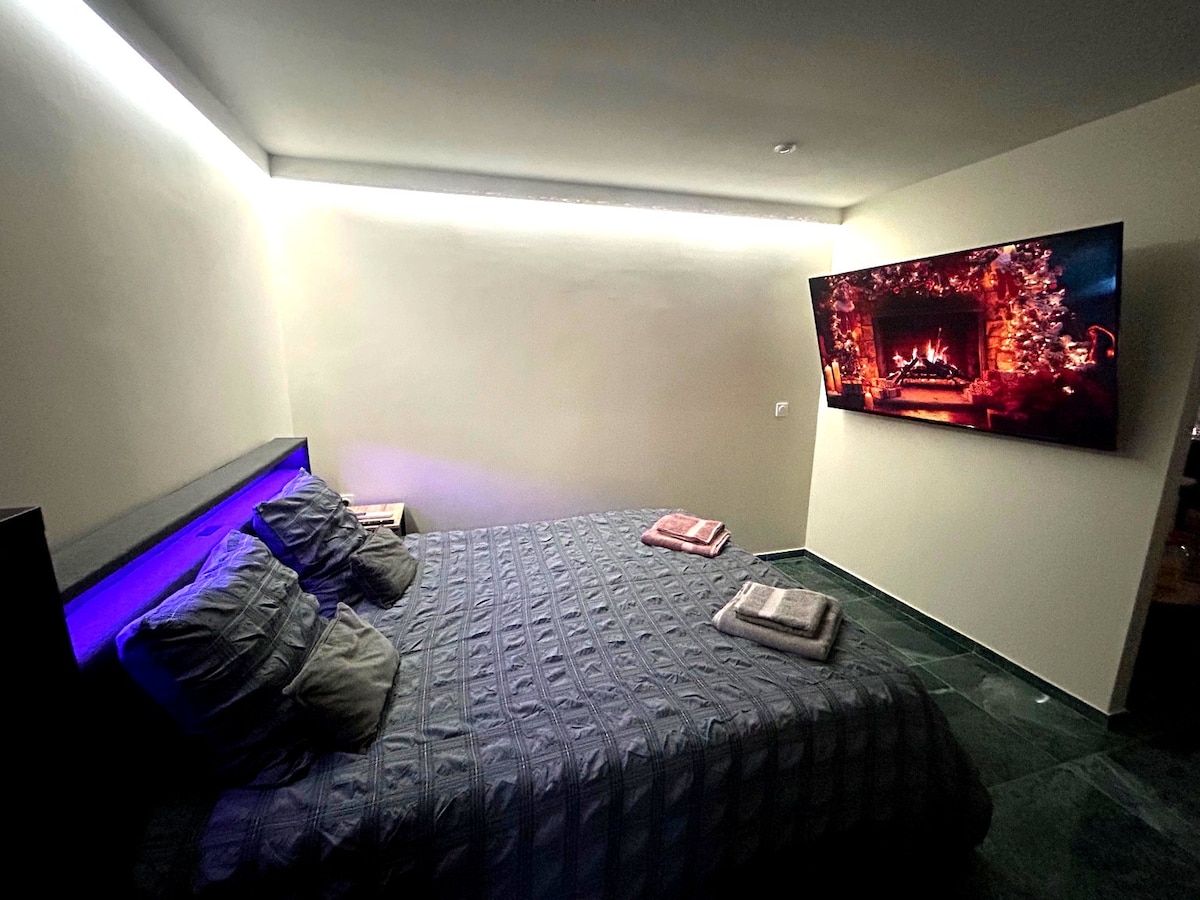 Ce studio (T1) élégant industriel de 33 mètre carrés est parfait pour les couples avec enfants, ou des ouvriers en déplacement professionnel, pas plus de 2 adultes, et 2 enfants il se compose d'une chambre double et d'un canapé lit, possible de mettre chaise haute et lit de bébé