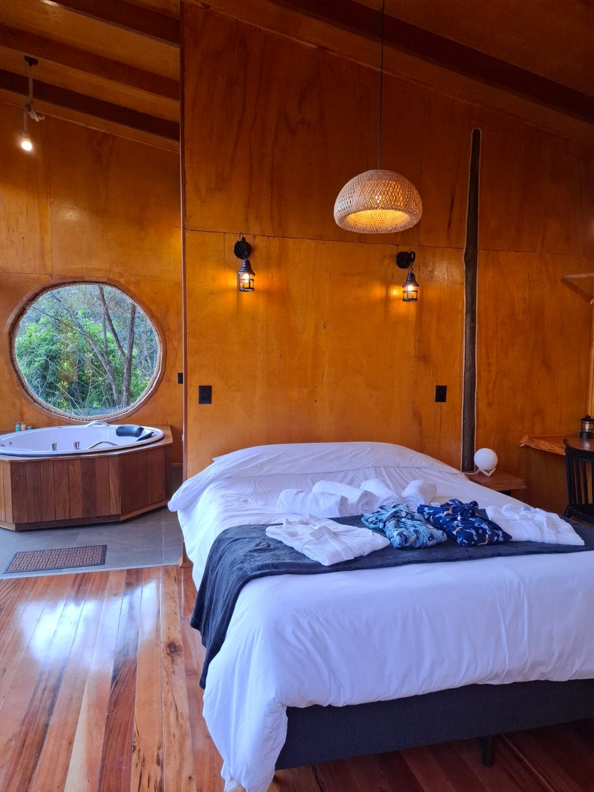 Détendez-vous dans cet espace calme et élégant, un environnement super confortable pour se reposer et se détendre, vous n'entendrez que les sons des animaux, des oiseaux et des cascades, de l'eau cristalline, à proximité de belles cascades, une cabane créée pour offrir une expérience unique, idéale pour les couples. Ofurô avec eau courante, une merveilleuse terrasse autour de vous, un espace gourmet avec barbecue, une cheminée extérieure pour réchauffer le froid de la montagne accompagné d'un bon vin, santé!