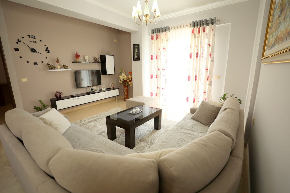 Notre appartement spacieux est à seulement 5 minutes à pied des plages, des restaurants, des boutiques et de la vie nocturne de Saranda. Situé dans le centre-ville, c'est le point de départ idéal pour explorer la Riviera albanaise. Le logement comprend une cuisine entièrement équipée, une connexion Wi-Fi rapide, une télévision à écran plat, la climatisation, un lave-linge et plus encore. Tout ce dont vous avez besoin pour un séjour confortable et pratique. Profitez du balcon privé avec vue sur la mer : l'endroit idéal pour votre café du matin ou un coucher de soleil relaxant. La gare routière à 2 minutes.