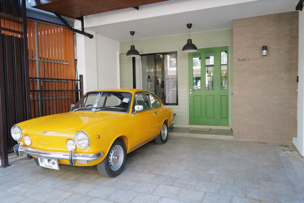 Une maison récemment rénovée est située dans la ville, à seulement 5 minutes de l'aéroport et des attractions touristiques populaires telles que Walking Street, Night Bazaar et la vieille ville (Ku Muang). Il est calme et facilement accessible situé au sein d'une communauté sécurisée qui offre une sécurité 24h/24. La maison est à quelques pas (~20m) de la piscine du village, de la salle de sauna, de la salle de sport et du jardin vert. La maison convient aux familles et aux groupes d'amis.