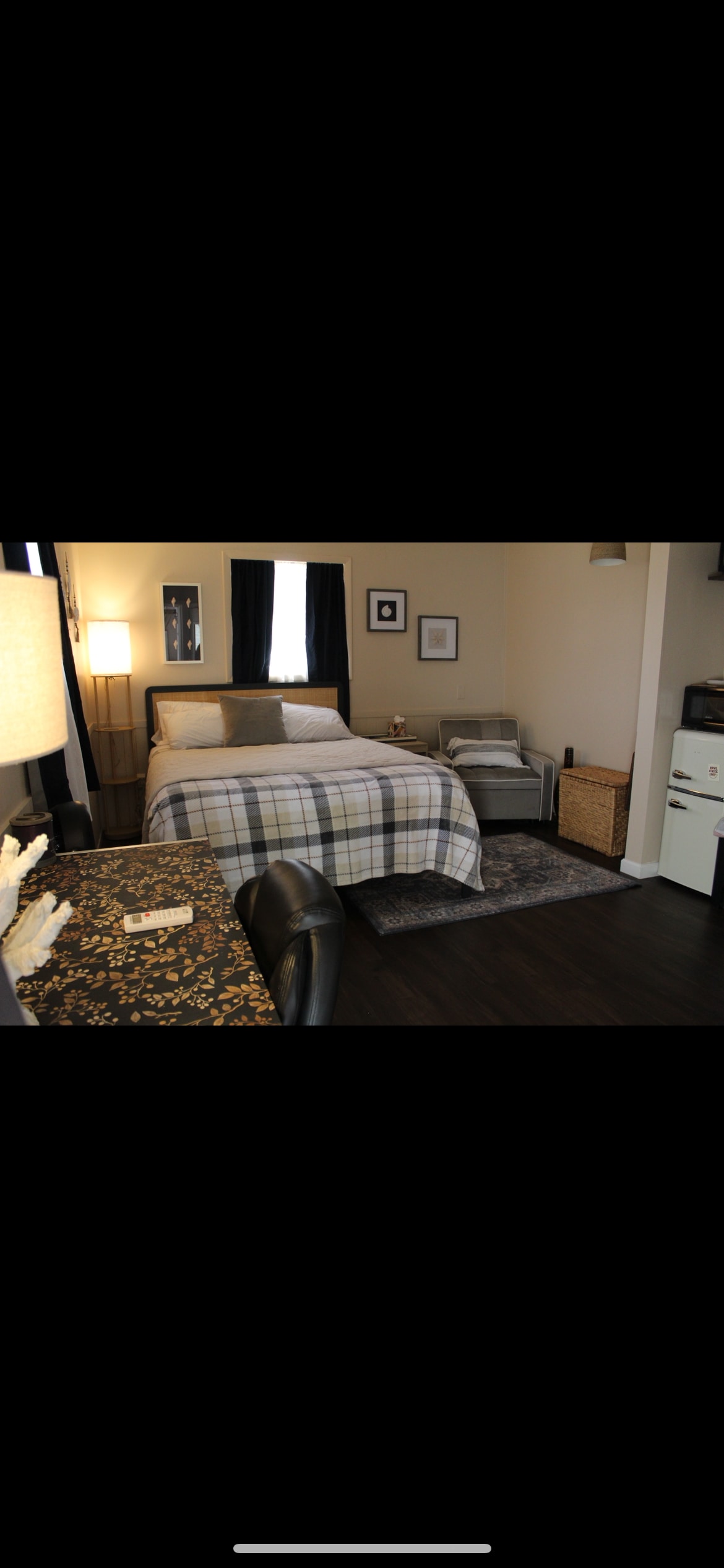 Imagine waking up to the smell of coffee on the screened-in porch and sunshine through the trees. Downtown, beaches, airport, I-75, and UTC restaurants and malls—all just 10 minutes away. This clean, modern studio features a full kitchen, queen bed, and a calm, cozy vibe. Out back? A vintage Ringling Bros. trailer and trapeze—reminders of Sarasota’s deep circus roots. Not for use, but they add a touch of magic. Simple. Serene. A little surreal.