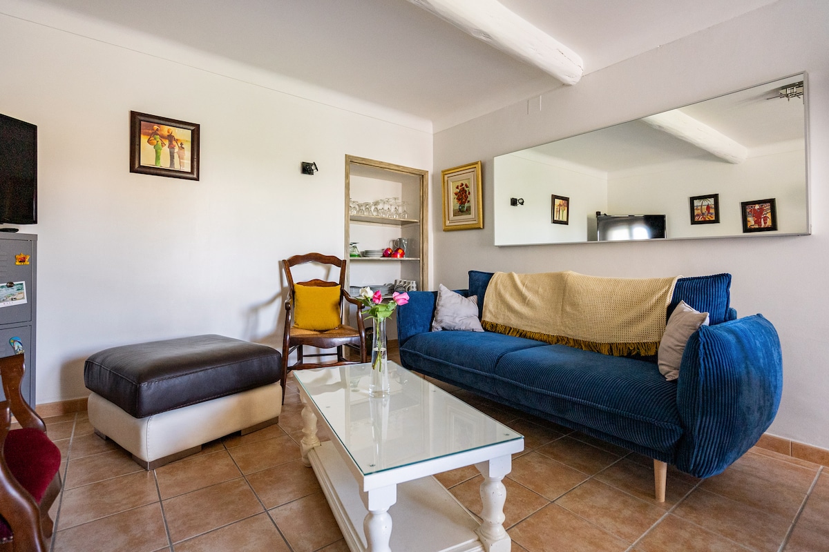 Nouveau: Connexion internet par fibre avec WIFI Situé au calme en pleine campagne cet appartement de caractère est idéalement situé a 20 min de l'autoroute, d'Avignon, d'Orange et de Carpentras . Il est lumineux, de plain pied et bien équipé (lave vaisselle, lave linge , four, microondes, cafetière Tassimo) . Vous disposerez d'une place de parking privative et d'une petite terrasse extérieure . Avec sa chambre séparée, il offre un bel espace pour accueillir 2 voyageurs .
