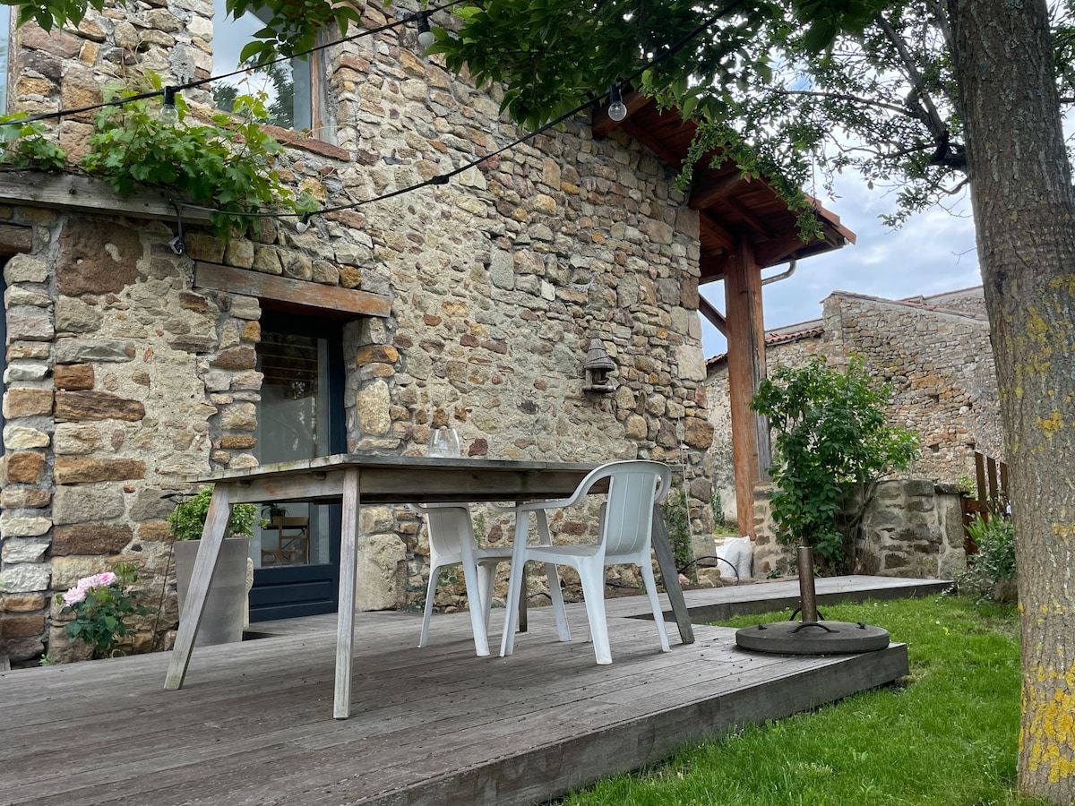 La plus haute maison d'Usson, un des plus beaux villages de France, 2 ch et un séjour ayant chacun un accès sur l'extérieur , 3 terrasses sur 3 niveaux et 3 orientations(est,sud et ouest,pour le coucher de soleil!),dont 2 avec une vue à 180° sur l'Auvergne et ses volcans. Pour plus d'indépendance,une 3ème chambre,avec une sdb ,dans la petite maison voisine, sont proposées à 60€ la nuit,au-delà de 6 voyageurs(capacité max de la maison principale) Commerces de base à 5km Alt 574m A 75 à 10mn