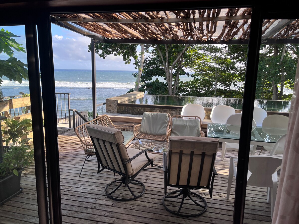 The beach house is situated in one of the most peaceful and green village of the country next to the garden of Telfair and is right on the beach and lagoon. Fully equipped and serviced villa with three ensuite bedrooms, swimming pool within walking distance of the village.