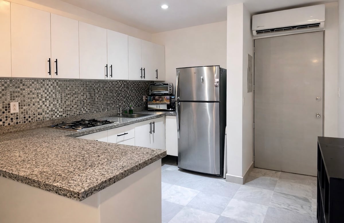 Casa Los Tito's est un appartement confortable idéal pour les familles de 2 à 4 personnes. Il dispose d'un lit queen size et d'un canapé-lit, de la climatisation, d'une cuisine équipée, de 2 téléviseurs, d'une connexion Wi-Fi haut débit. La copropriété offre deux piscines à débordement (dans le hall et sur le toit, avec une vue imprenable sur la baie), un espace de coworking pour les tâches de bureau, une salle de sport avec des équipements de base pour le yoga et les poids, ainsi qu'un parking. Parfait pour se détendre et rester connecté proche de la mer et de la zone gastronomique.