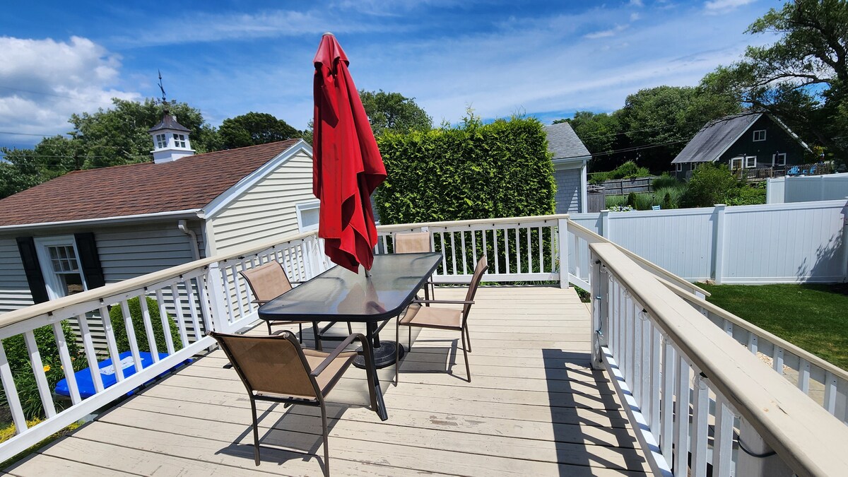 Profitez de cette maison unifamiliale avec cour privée et parking. Nous fournissons une cuisine entièrement équipée, des draps et des serviettes propres, et même des jouets de plage. Il suffit de vous présenter. Marchez jusqu'à la plage de Scarborough en moins de 5 minutes ou randonnez jusqu'à Black Point pour une vue panoramique sur l'océan. À moins de 5 miles, vous trouverez plusieurs plages publiques, des restaurants, des pistes cyclables, des aires de jeux et des concerts d'été gratuits. À moins de 10 miles, accédez au golf de disque, au golf traditionnel, aux réserves fauniques et à l'URI.