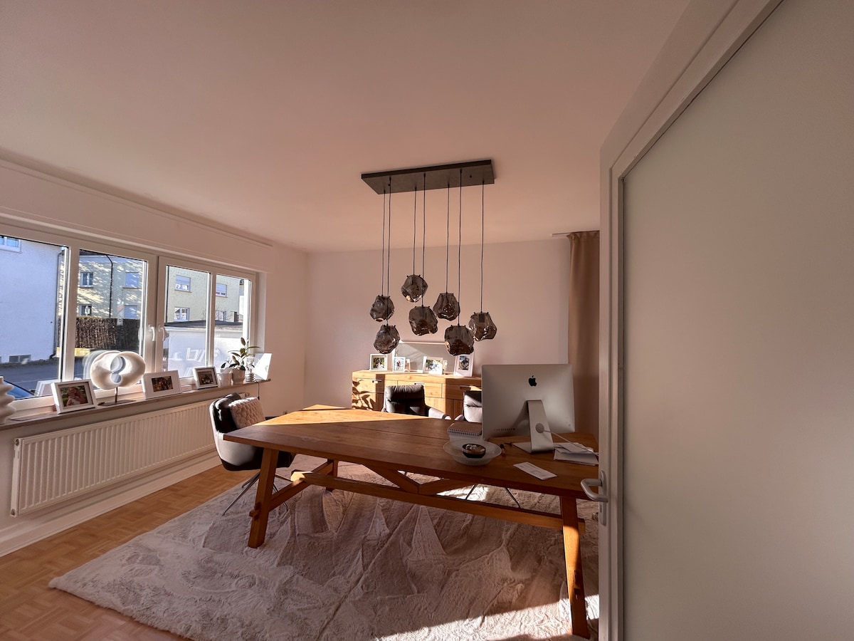 Nos hôtes disposent de leur propre appartement, qui n'est toutefois loué qu'à un seul groupe à la fois. Elle dispose de deux lits doubles et d'un lit simple. Lit bébé sur demande. L'appartement est au 2ème étage, accessible par des escaliers (pas d'ascenseur), mais très calme et avec une vue magnifique sur Munot, le Rhin et Schaffhouse. La ville de Schaffhouse est accessible à pied en 10 minutes. Parking pour votre voiture vous sera fourni par nous. Grande terrasse sur le toit pour un soleil non perturbé.