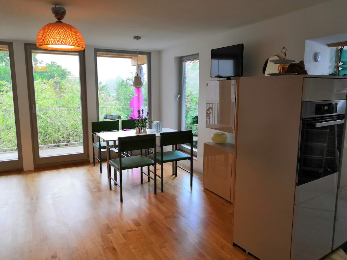 Envie de passer des journées confortables directement sur le Rhin pour vous détendre, faire du jogging, faire du vélo ou visiter les thermes modernes de Bad Zurzach. Est très bien situé juste à la frontière suisse, à 2 minutes à pied du marché des boissons, ALDI 4 minutes, Pizzeria Engel et restaurant thaïlandais/chinois à 2 minutes et les thermes de Bad Zurzach sont à environ 10 minutes. L'appartement dispose d'un balcon presque directement sur le Rhin. L'appartement est très lumineux, sympathique et propre. Les commerces sont accessibles à pied en 5 min.
